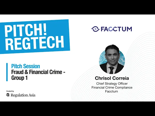 Chrisol Correia, our Chief Strategy Officer, made waves with his presentation on behalf of Facctum at Regulation Asia Pitch! 2023 in Singapore. Competing in the Fraud and Financial Crime category, Correia's dynamic delivery showcased Facctum's innovative solutions.